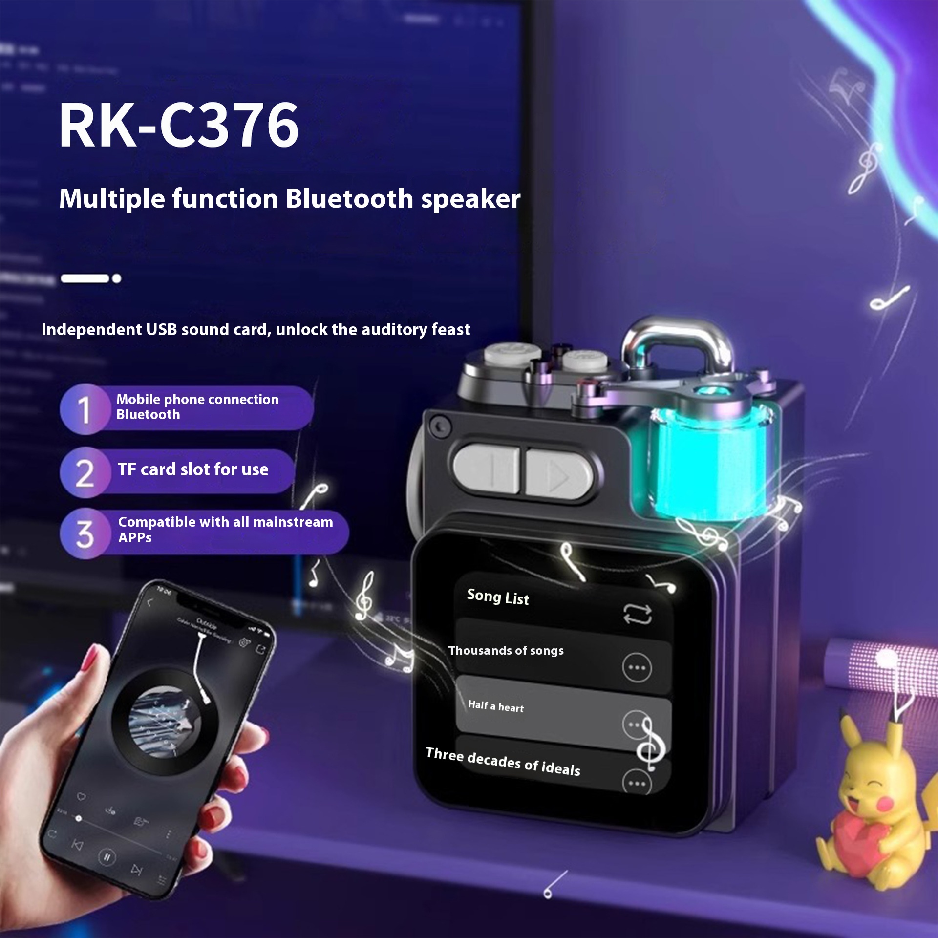 Speaker, touch screen ambient light, portable speaker, high-power wireless mini speaker